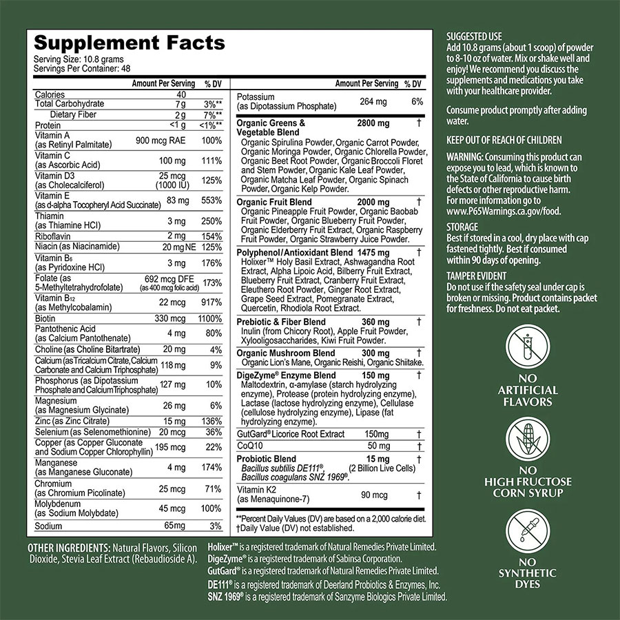 Hỗn hợp chất chống oxy hóa chứa nhiều siêu thực phẩm có chứa nhiều trái cây, rau xanh và polyphenol giàu dinh dưỡng, cùng với CoQ10 giúp hỗ trợ sức khỏe tim mạch và miễn dịch.*