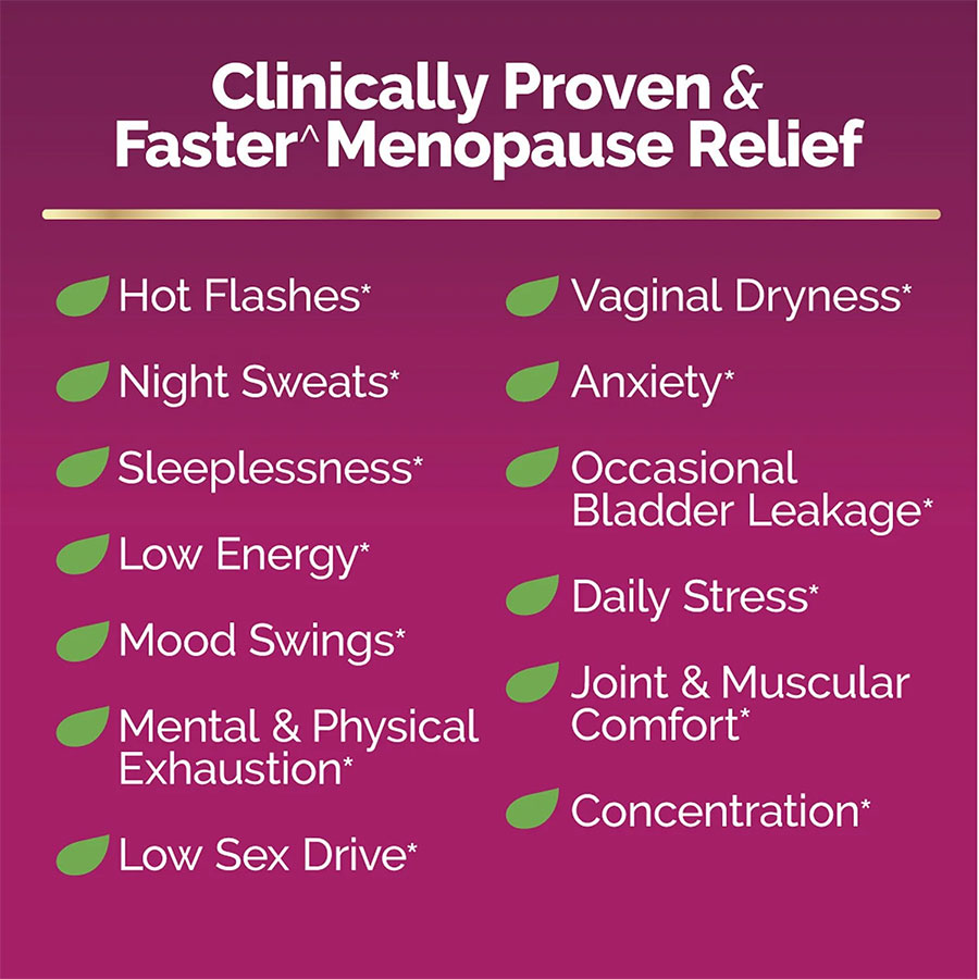 Trải nghiệm sự giải thoát hoàn toàn khỏi các triệu chứng mãn kinh với Estroven Complete Menopause Relief từ Sam’s Club. Giải pháp tất cả trong một này đã được chứng minh lâm sàng là làm giảm tất cả các triệu chứng mãn kinh đã được kiểm nghiệm, bao gồm bốc hỏa, đổ mồ hôi đêm, thay đổi tâm trạng, v.v., mang lại sự giải thoát an toàn và hiệu quả chỉ với một viên thuốc mỗi ngày*. Được hỗ trợ bởi đại hoàng rhapontic có nguồn gốc thực vật, nó hỗ trợ sức khỏe tổng thể, cải thiện chất lượng giấc ngủ, tăng cường mức năng lượng và giảm căng thẳng và lo lắng liên quan đến mãn kinh. Được chứng minh lâm sàng là làm giảm tổng thể các triệu chứng mãn kinh lên đến 60% và bốc hỏa lên đến 80%*, Estroven Complete Menopause Relief thúc đẩy sự minh mẫn về tinh thần, sức khỏe tiết niệu và chức năng bàng quang, mang lại kết quả rõ rệt chỉ sau 28 ngày^. Thêm vào đó, nó không chứa thuốc, không chứa estrogen, không chứa hormone, không chứa đậu nành, không biến đổi gen, dành cho người ăn chay, thuần chay, không chứa bột ngọt và không chứa gluten để bạn an tâm. Hãy thử Estroven Complete Menopause Relief ngay hôm nay để có chất lượng cuộc sống tốt hơn.