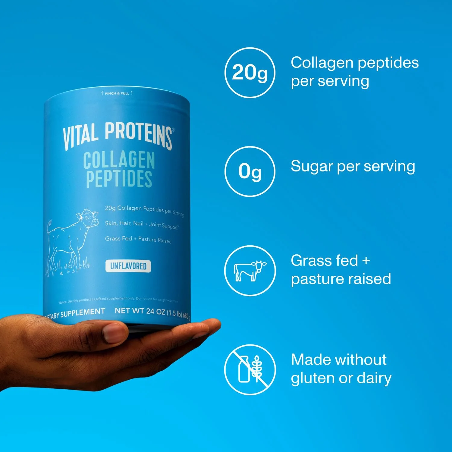Sản phẩm bổ sung collagen giúp đẹp da, tóc khỏe, móng tay chân chắc khỏe, cung cấp đến 20g protein/lần uống -Vital Proteins Collagen Peptides Powder, Unflavored, 1.5 lbs