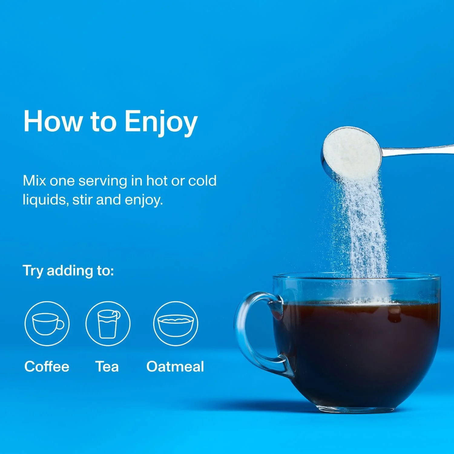 • Unflavored powder is soluble in hot or cold liquids, including coffee and smoothies